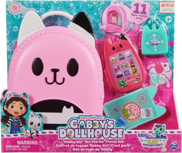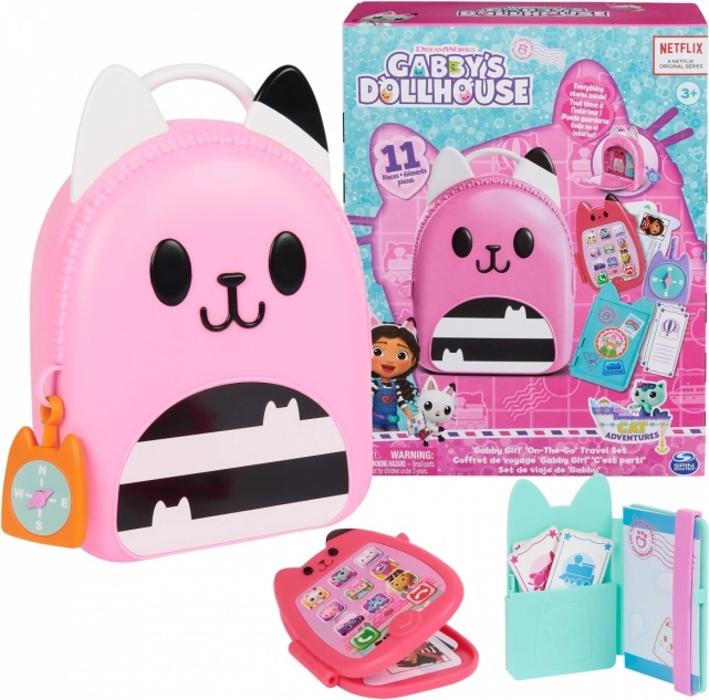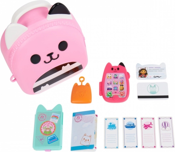 Pregătește-te pentru aventuri palpitante cu setul de călătorie Ghiozdan. Acest set din 11 piese este un echipament esențial pentru fanii serialului DreamWorks Casa Pisicuțelor lui Gabi, care adoră jocurile de rol. Include un telefon mobil de jucărie care se pliază și poate găzdui brelocul-pisicuță, cardul de identitate al lui Gabi, un breloc cu busolă, un portofel de călătorie în care încape un pașaport de jucărie și bilete de călătorie, plus o cutiuță de jucării super drăguță în formă de pisică, cu prinderi speciale, în care încap toate jucăriile grozave de la grădiniță. Fiecare piesă a setului a fost realizată special cu design și stil autentice, arătând exact ca accesoriile de călătorie ale lui Gabi din serial. Copiilor le va plăcea să alerge prin casă și să pretindă că călătoresc prin lume la fel ca Gabi. Pentru și mai multe aventuri captivante, caută aparatul foto, care încape și el în container, astfel încât te poți distra făcând poze în timpul călătoriilor (aparatul foto se vinde separat). Pentru o ultimă surpriză, scanează codul QR de pe ambalajul setului de călătorie pentru a accesa aplicația gratuită Casa Pisicuțelor lui Gabi (disponibilă pentru iOS și Android). Jucăriile de pluș, păpușile, figurinele și seturile Casa Pisicuțelor lui Gabi sunt ideale pentru fetițe și băieți care adoră să-și folosească imaginația și să-și creeze propria lume de căsuțe pentru păpuși, așa că pregătește-te pentru aventuri nesfârșite cu setul de călătorie Gabi în mișcare.