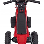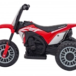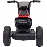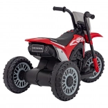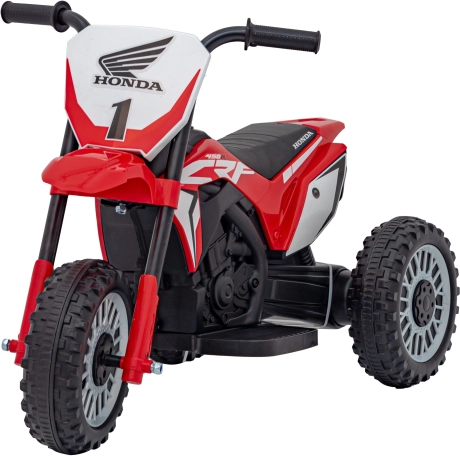 Această motocicletă pentru copii licențiată, inspirată de modelul Honda CRF 450R, este ideală pentru primele plimbări atât în grădină, cât și în casă. Construcția cu trei roți asigură stabilitate ridicată și siguranță la pornire, în timp ce roțile din plastic cu banda de rulare din cauciuc oferă aderență mai bună și o rulare mai silențioasă.