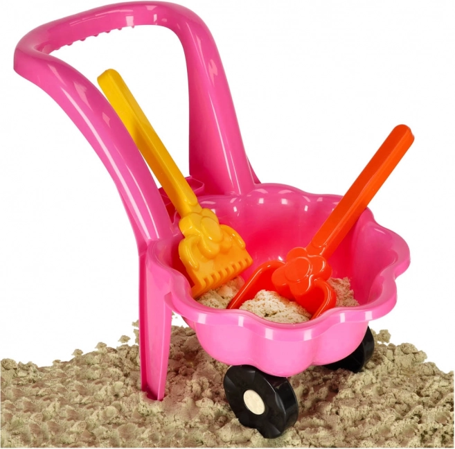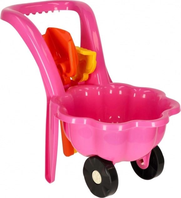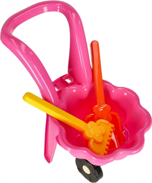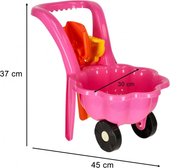 În pachet găsești roaba, lopățica și grebla – tot ce are nevoie copilul pentru a construi castele și a transporta comori.
