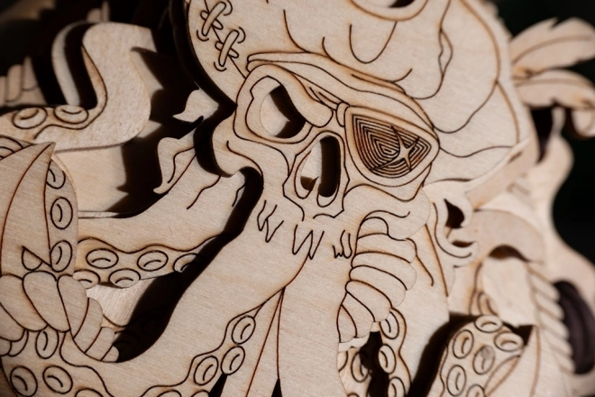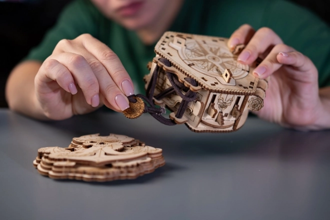 Produsul este realizat din lemn de calitate și impresionează prin măiestria detaliată, atrăgând orice pasionat de puzzle-uri.