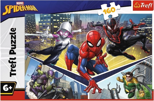 Aceste puzzle-uri cu tematică Spider-Man conțin 160 de piese și după asamblare va rezulta o imagine cu dimensiuni de 410x275 mm. Puzzle-ul ilustrează Spider-Man, prietenii și dușmanii săi.