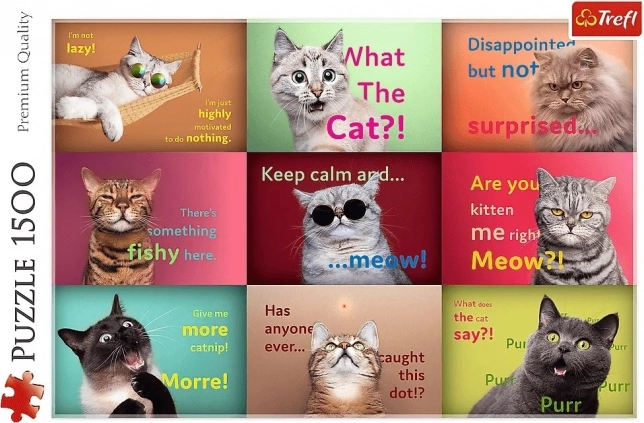 Aceste puzzle-uri Portrete amuzante de pisici au 1500 de piese și compun un tablou de dimensiuni 85 x 58 cm. Fabricate din materiale de înaltă calitate și hârtie specială calandrată, care reflectă lumina, sunt ideale pentru asamblare ușoară. Creat în Polonia având în vedere mediul înconjurător.