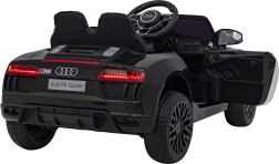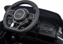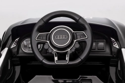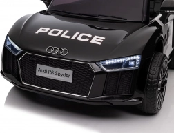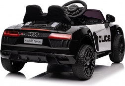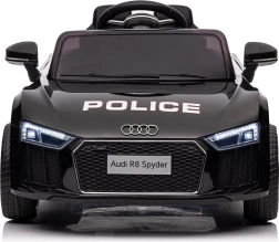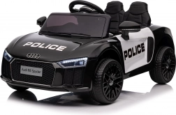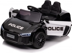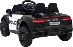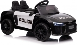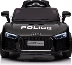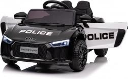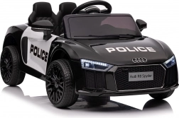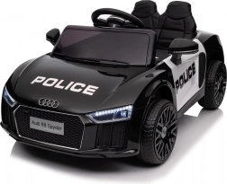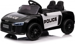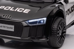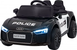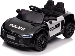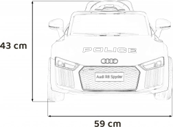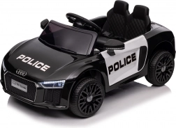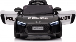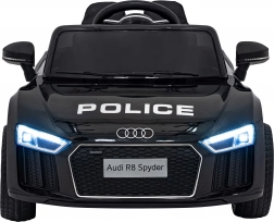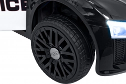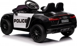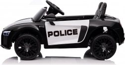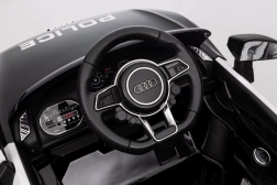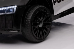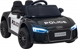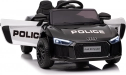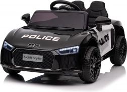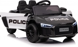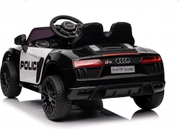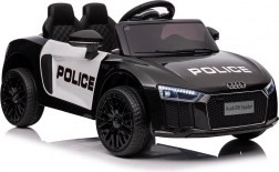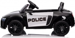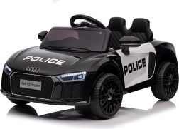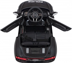 Mașinuța electrică de poliție AUDI R8, cu stil, îi va încânta pe micii șoferi prin aspectul realist și dotările excelente. Oferă 2× motoare de 35 W, baterie dublă 2× 6 V/4,5 Ah, telecomandă 2.4G cu 3 trepte de viteză și buton de siguranță STOP, roți moi din EVA 19 × 7 cm cu suspensie față și spate, pornire lină, lumini LED și un panou audio USB/SD/MP3/AUX distractiv. Confortul este asigurat de scaunul din piele ecologică cu centuri și de ușile care se deschid.