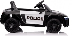 Mașinuța de poliție AUDI R8 este concepută pentru distracție maximă și siguranță. Datorită motoarelor puternice de 2× 35 W și bateriei duble, copiii se bucură de plimbări mai lungi, în timp ce părinții păstrează controlul prin telecomanda 2.4G cu trei viteze și butonul de oprire de urgență STOP. Aspectul realist este completat de luminile LED față și spate, ușile care se deschid și scaunul confortabil din piele ecologică cu centuri de siguranță.