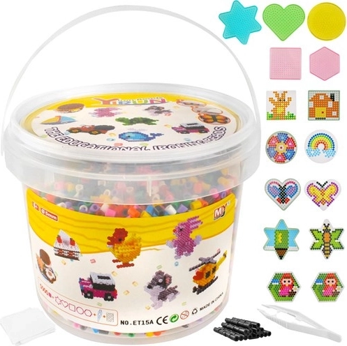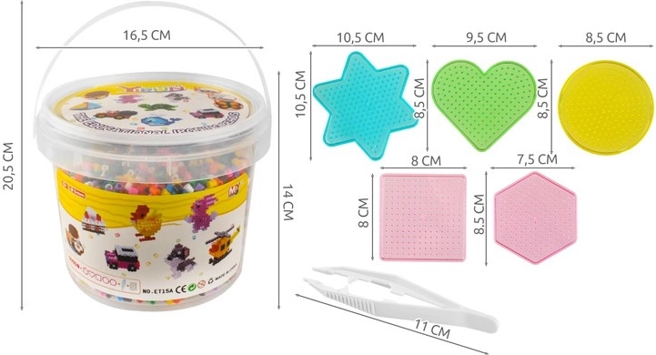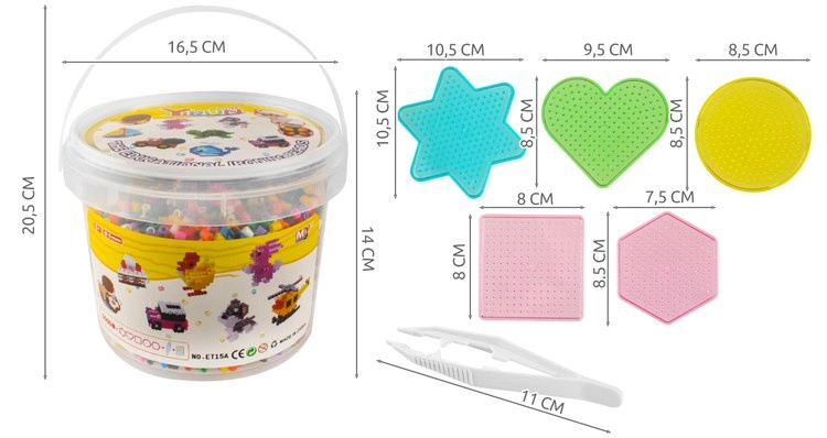 - Conținutul pachetului: 5000x mărgele, 5x suprafață de joc, 1x clește pentru mărgele, 1x recipient