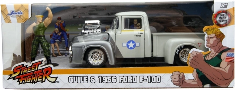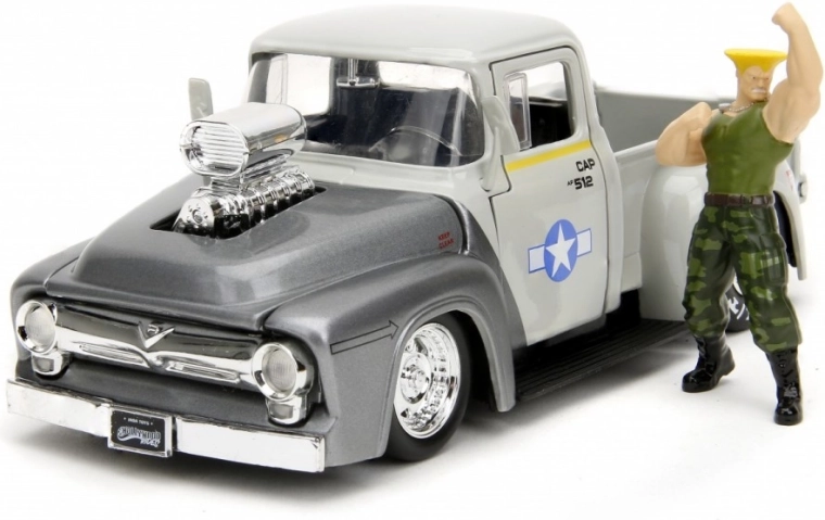 Pickup-ul Ford din 1956, din metal, este inspirat de jocul cult Street Fighter din anii ’90. Setul include o figurină metalică a eroului jocului, Guile. Acest set de colecție este un accesoriu indispensabil pentru orice fan Street Fighter și pentru iubitorii de vehicule istorice.