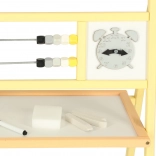 Este fabricată din lemn, oferind stabilitate și durabilitate pe termen lung. Datorită dimensiunilor compacte (30 x 56 x 90 cm) este potrivită în orice cameră de copii, grădiniță sau sală de clasă. Polița practică pentru accesorii menține ordine în timpul jocului.