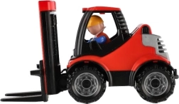 Este fabricată din plastic durabil, ceea ce garantează o durată lungă de viață chiar și sub utilizare intensă. Cabina rabatabilă cu figurina adaugă realism și permite copiilor să se transpună în rolul constructorilor.