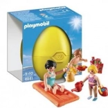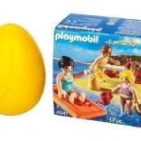 Descoperă oul jucăuș PLAYMOBIL, în care se ascunde un set de vară cu decor de plajă – mama cu copiii se bucură de apă, saltea gonflabilă și construit castele de nisip. Oul servește totodată ca pușculiță, astfel încât copiii pot în timp ce se joacă să strângă mărunțișul. Ideal pentru joacă creativă, dezvoltarea imaginației și ca piesă de colecție pentru copii de la 4 ani.
