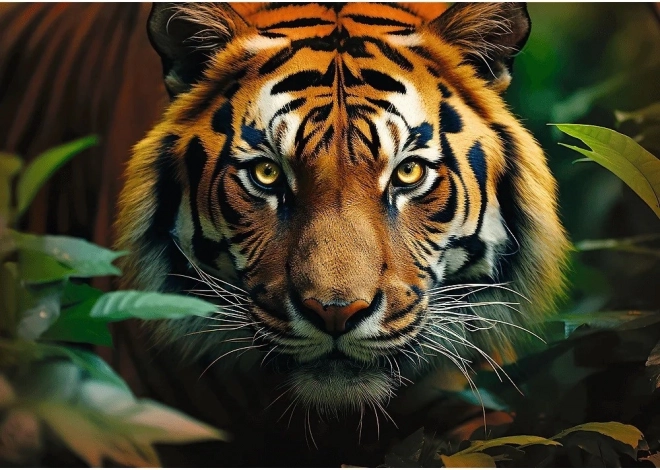 Descoperă frumusețea naturii cu un puzzle de 1000 de piese având ca temă un tigru maiestuos ascuns în frunziș. După asamblare, formează o imagine de 68,3 × 48 cm. Fabricat cu accent pe materiale ecologice și hârtie calandrată specială pentru reflexii reduse și o asamblare mai confortabilă.