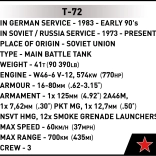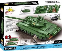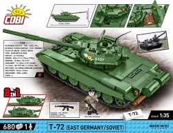 Construiește tancul iconic T‑72 M1 la scara 1:35 din 680 piese COBI. Modelul oferă detalii realiste, turelă și tun mobile, șenile funcționale și o figurină de tanchist est-german. Sunt incluse, de asemenea, două seturi de decaluri pentru Germania de Est și URSS și o plăcuță de colecție.