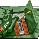 Modelul se remarcă prin elemente mobile – turelă rotativă, elevarea tunului, șenile funcționale și trapă care se deschide pentru plasarea figurinei tanchistului. Nu lipsesc două seturi complete de marcaje (RDG/URSS), imprimeuri clare care nu se estompează și o plăcuță de colecție cu denumirea. Setul este pe deplin compatibil cu alte mărci și respectă normele europene de siguranță.