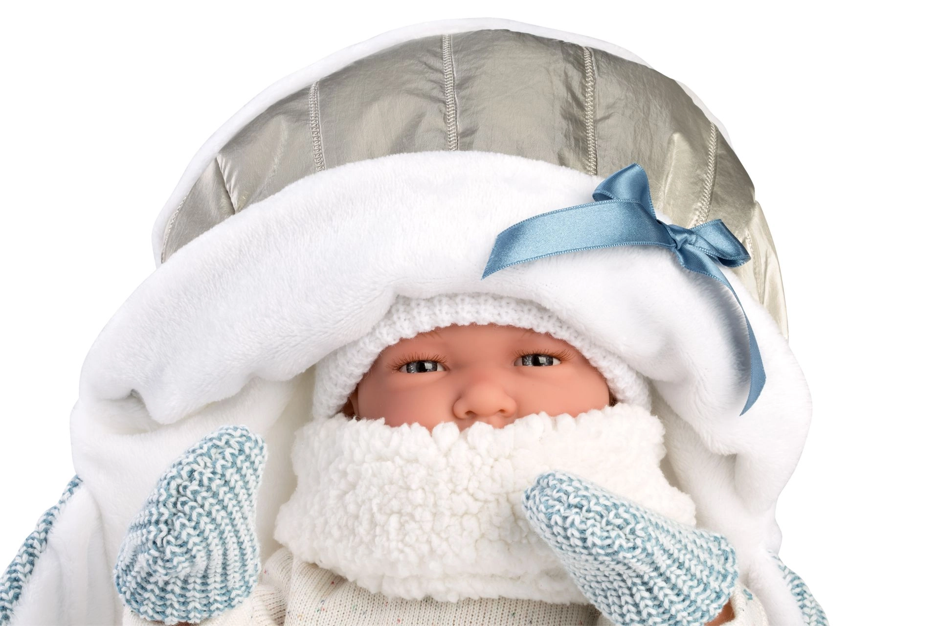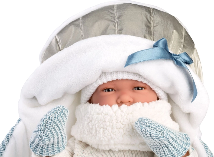 Așezați confortabil păpușa și luați-o cu voi – salteluța moale cu glugă și bretele practice protejează și ușurează transportul.