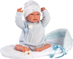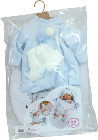 Set din două piese pentru păpușa NEW BORN de 43–44 cm, care include o hăinuță moale și un sac călduros. Producția manuală în Spania garantează calitate, execuție precisă și confort la joacă. Ideal pentru dezvoltarea imaginației și a abilităților de îngrijire la copiii de la 3 ani.