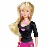 Steffi strălucește într-un top elegant negru cu inimă roz și într-o fustă roz sclipitoare – combinația perfectă pentru orice prezentare de modă.