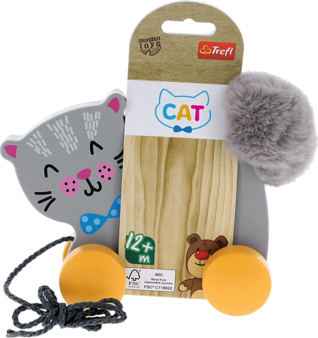 Drăgălașa pisicuță din lemn cu șnur va încânta orice bebeluș. Este realizată din lemn natural, are forme netede pentru mânuțe mici și, datorită rotițelor, „aleargă” fidel după copil. Susține primele plimbări, dezvoltă motricitatea fină și prinderea și stimulează simțurile cu coada moale. Suprafața este tratată cu vopsele netoxice și sigure.