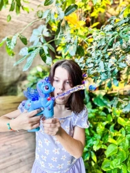 Este suficient să apăsați declanșatorul și unicornul va începe să creeze bule frumoase, în timp ce cântă o melodie distractivă. Această jucărie oferă ore de distracție atât în exterior, cât și în interior, ideală pentru petreceri de copii și joacă în grădină.