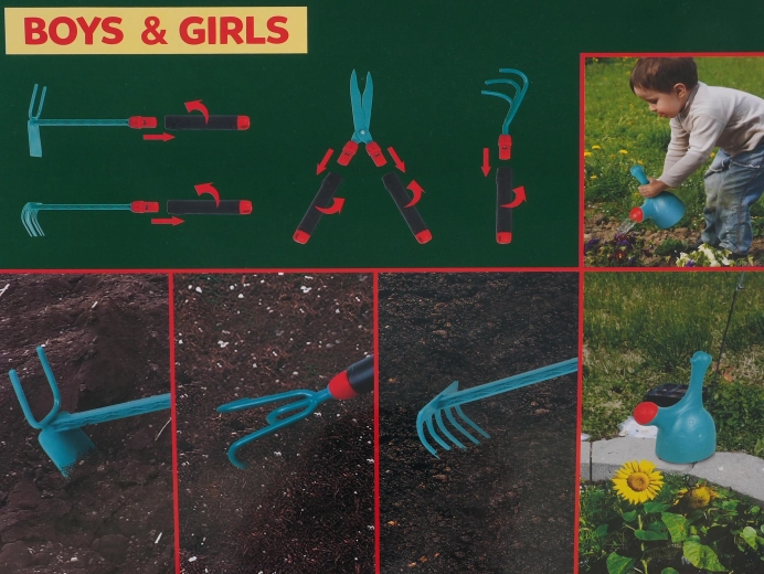 Set de unelte de grădinărit sigure pentru copii de la 3 ani. Setul include tot ce este necesar pentru munca în grădină. Uneltele sunt sigure, nu au margini ascuțite și au dimensiunea ideală pentru mâini mici. Mânerele uneltelor sunt, de asemenea, detașabile. Setul este realizat într-o schemă de culori universală, ideală atât pentru băieți, cât și pentru fete. | |