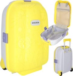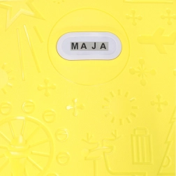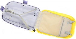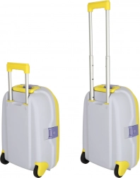 Troler de cabină pentru copii, ușor și rezistent, cu două roți și mâner telescopic pentru o călătorie confortabilă. Oferă capacitate mare datorită celor două compartimente, roți cu LED pentru vizibilitate sporită și distracție, precum și posibilitatea de etichetare cu numele folosind abțibilduri. Culoarea galbenă intensă și motivele jucăușe în relief îi vor încânta pe toți micii călători.