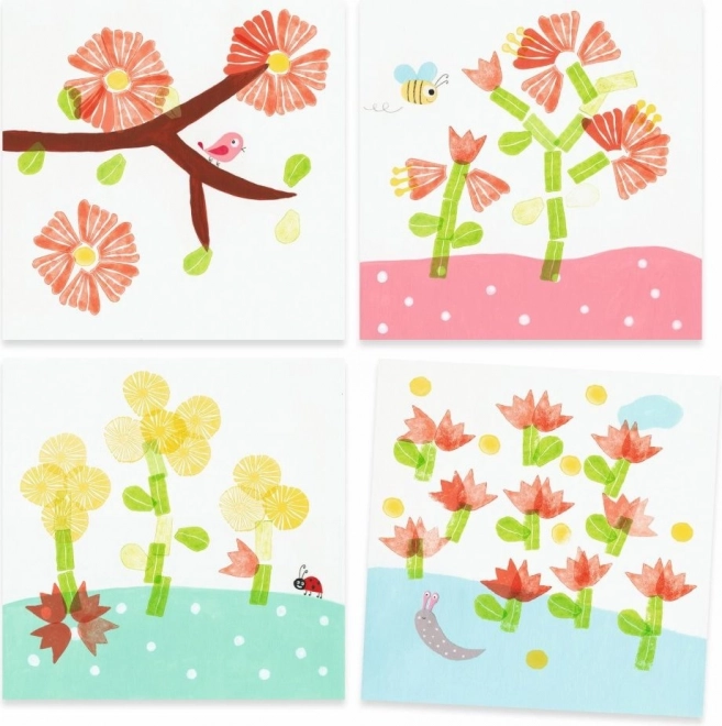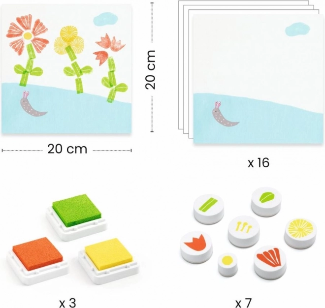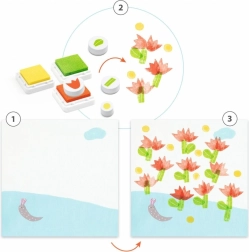 Cu setul de ștampile DJECO Flori, copiii pot încerca să imprime ștampilele conform instrucțiunilor sau după propria fantezie. Fiecare set conține diferite motive naturale și florale care inspiră creativitatea.