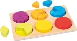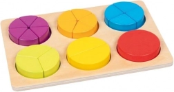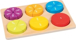 Puzzle din lemn educațional Fracții este o unealtă ideală pentru copiii mici care doresc să învețe bazele matematicii într-un mod distractiv. Datorită segmentelor colorate și designului simplu, copiii pot înțelege cu ușurință concepte precum jumătăți, sferturi și alte fracții. Suportul din lemn facilitează asamblarea și asigură o durată de viață mai lungă a produsului.