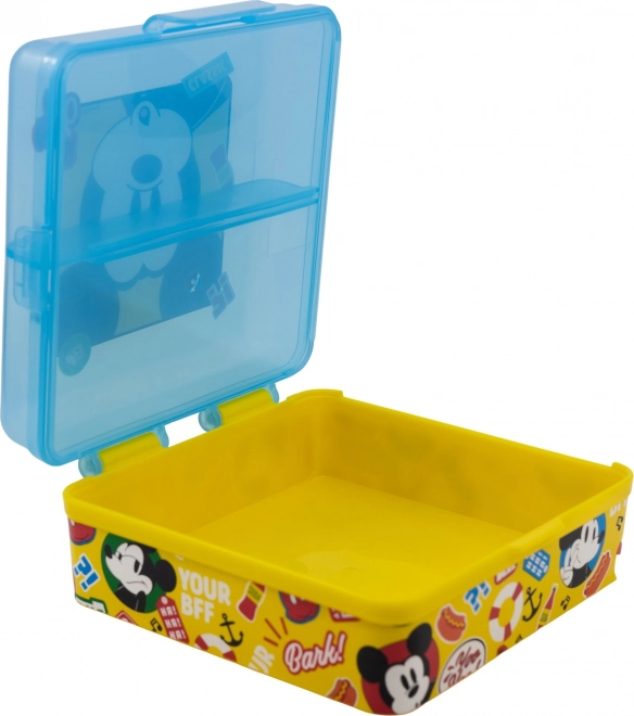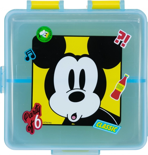 Cutia de gustare originală, cu îndrăgitul motiv MICKEY MOUSE, este ideală pentru școală, locul de joacă și excursii. Datorită compartimentelor, pregătiți ușor o gustare echilibrată și păstrați alimentele separate. Plasticul rezistent suportă utilizarea zilnică și căderile ocazionale.