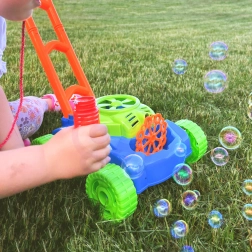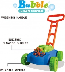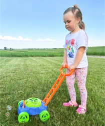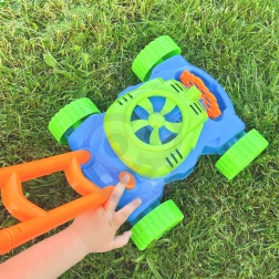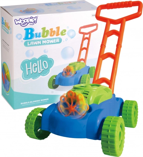 Această mașină de tuns iarbă cu bule, colorată, de la WOOPIE, transformă orice după-amiază în grădină într-o distracție. Datorită suflării automate a bulelor și huruitului realist al roților, copiii pot imita cu ușurință munca adulților, exersându-și în același timp echilibrul și coordonarea. Mânerul stabil facilitează împingerea și manevrarea ușoară.