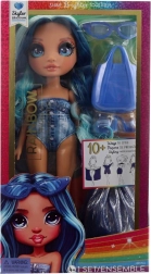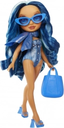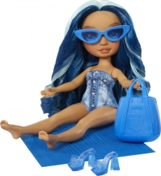 Păpușa SKYLER din colecția Rainbow High Swim & Style impresionează cu părul lung albastru, costumul de baie trendy și multe accesorii pentru posibilități infinite de stilizare. Datorită membrelor articulate, adoptă cu ușurință poziții și este pregătită pentru orice aventură de vară.