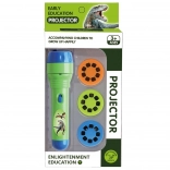 Acest proiector pentru imagini Dino este un instrument ideal pentru micii iubitori de dinozauri. În pachet găsiți proiectorul, trei discuri cu slide-uri care conțin un total de 24 de fotografii captivante cu dinozauri. Cu ajutorul comutatorului ON/OFF îl puteți porni ușor, iar inelul de focalizare permite obținerea unei imagini clare și luminoase.