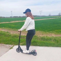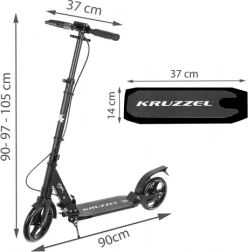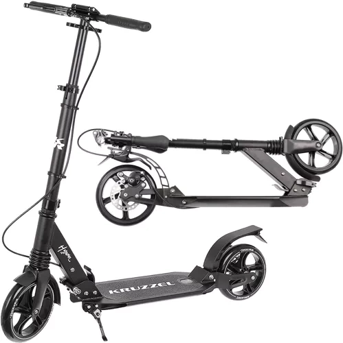 Trotineta pliabilă Kruzzel este ideală pentru călătoriile urbane rapide și ecologice. Aceasta garantează confort maxim datorită roților mari din cauciuc și a unei construcții robuste care suportă o greutate de până la 100 kg, potrivită atât pentru copii, cât și pentru adulți.
