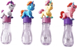 Acest baloane de săpun aduce dublă porție de bucurie: după desfiletarea capacului găsiți o baghetă cu inel clasică cufundată în soluția pentru baloane, cu ajutorul căreia creați ușor o mulțime de bule curcubeu. Pe partea superioară a capacului se află o frumoasă figurină de unicorn, care se detașează simplu și se transformă într-o mică jucărie de sine stătătoare.