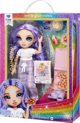 Descoperă lumea culorilor și a stilului cu păpușa Rainbow High Junior High – Violet Purple. Această păpușă de colecție și de joacă arată fantastic în pijamalele mov în carouri, cu un tricou moale și papuci asortați. Părul mov lung, genele accentuate și ochii de sticlă oferă un aspect realist și fermecător pe care copiii îl adoră.