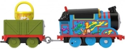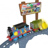 Pornește într-o misiune plină de acțiune „livrarea vopselei” alături de locomotiva THOMAS & FRIENDS. Locomotiva motorizată Thomas străbate peste 1,5 m de șine, iar pe pod vagonul poznaș răstoarnă cutiile, pe care macaraua funcțională rotativă le încarcă la loc. O joacă interactivă excelentă pentru copii de la 3 ani, care dezvoltă motricitatea fină și imaginația.