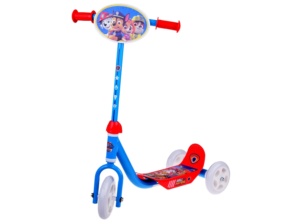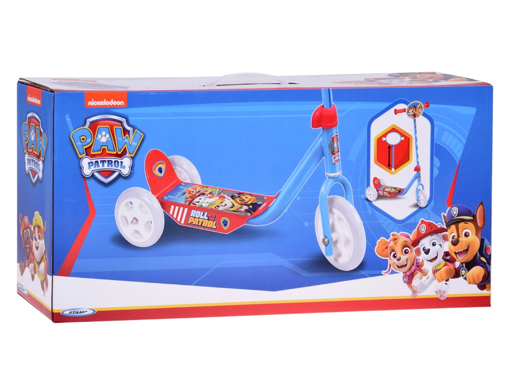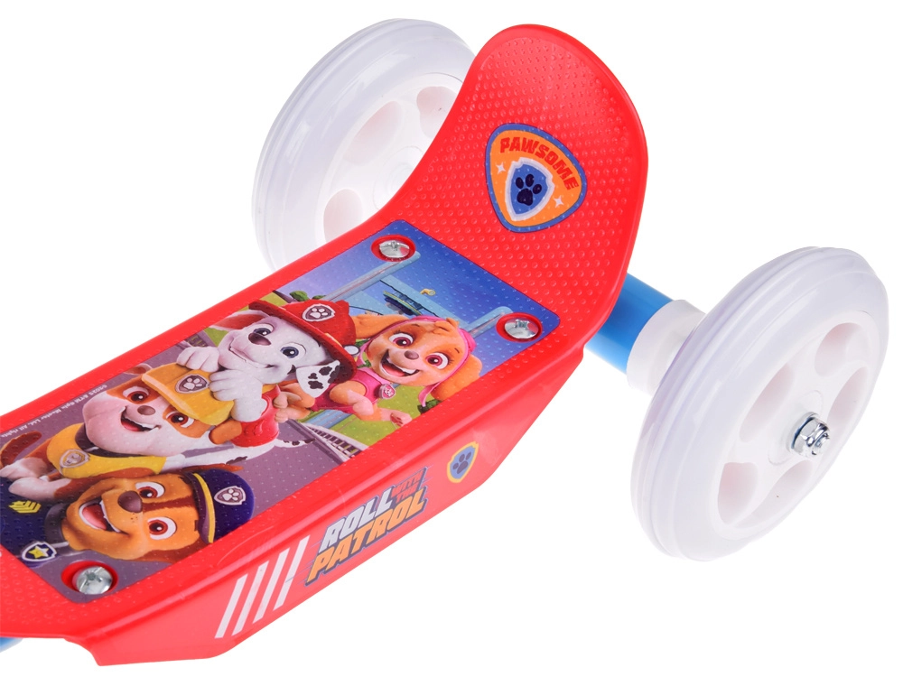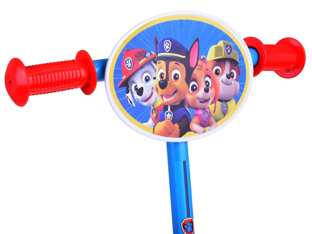 Trotineta, în atractiva combinație de culori roșu‑albastru, este decorată cu îndrăgiții eroi din PAW PATROL. Pe ghidon se află o plăcuță decorativă cu grafică, care îi va încânta pe toți micii fani.