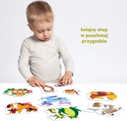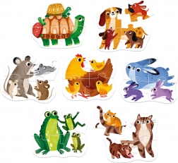 Hei, piticilor, e timpul pentru primele voastre puzzle-uri din mai multe piese! Animăluțele simpatice și părinții lor vă invită să începeți să asamblați puzzle-uri. Primul meu puzzle pentru copii mici este un set educativ care conține 4 puzzle-uri colorate, fiecare alcătuit din 4 piese mari.