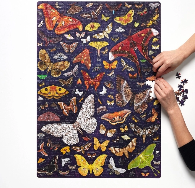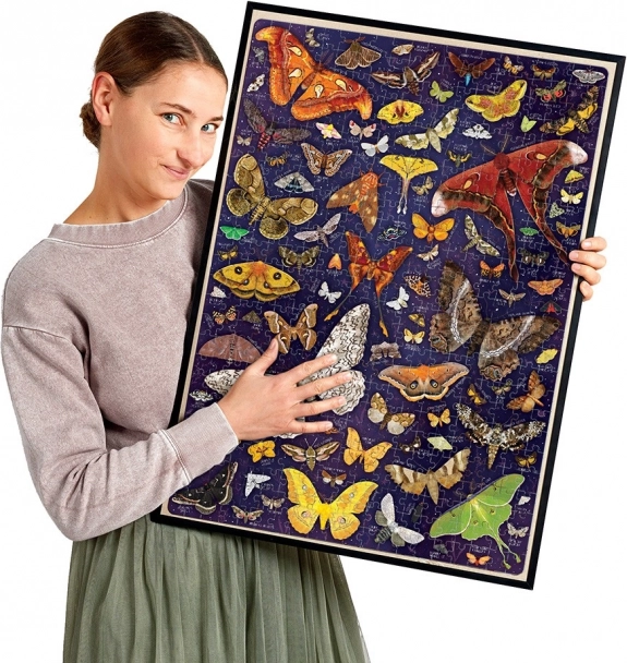 Descoperă frumusețea misterioasă a fluturilor de noapte cu puzzle-ul Puzzlove – Molii. Setul de 1000 de piese oferă o provocare relaxantă și un excelent antrenament al concentrării. După asamblare, rezultă o imagine de 48 × 68 cm, care poate fi o decorare stilată a interiorului și un cadou original pentru iubitorii de natură și puzzle-uri.