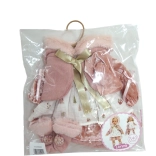 Acest set stilat pentru păpușă este conceput să iasă în evidență prin eleganță și confort. Combină tonuri delicate de roz cu elemente călduroase și este ideal atât pentru joaca de zi cu zi, cât și pentru ocazii festive. Cusătura manuală și materialele atent selectate asigură o durată de viață îndelungată și un aspect deosebit.