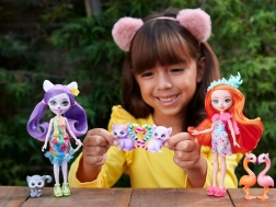Păpușa Lorinda Lemur și trei prieteni animăluțe aduc în joacă tandrețe, prietenie și o mulțime de povești inspirate din lumea ENCHANTIMALS.