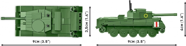 Acest mini model din COBI Historical Collection este realizat la scara 1:72, iar după asamblare măsoară aprox. 9 cm în lungime, păstrând fidel trăsăturile-cheie ale originalului. Datorită turelei mobile și roților, te bucuri atât de expunere, cât și de joacă. Inscripțiile cu însemne britanice oferă modelului un aspect autentic.