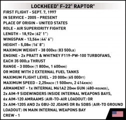 LOCKHEED F-22 Raptor este un avion de vânătoare foarte avansat, remarcabil prin manevrabilitate, stealth radar și capacitatea de a executa operațiuni aeriene și terestre. Acest model de la COBI se remarcă prin nivelul ridicat de detaliu și face parte din colecția Armed Forces.