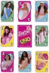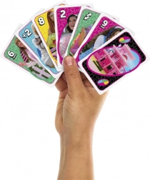 Îmbarcați-vă în lumea Barbie cu cărțile colorate și unice, care aduc o nouă dimensiune de distracție în jocul vostru UNO.