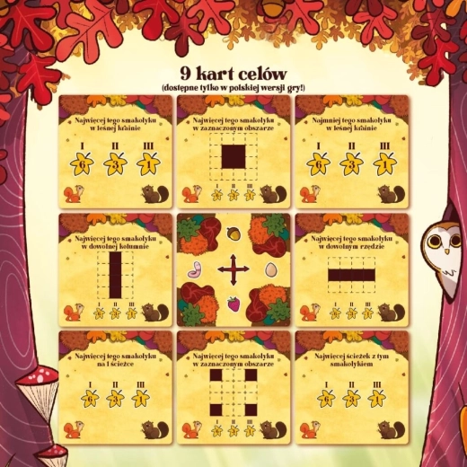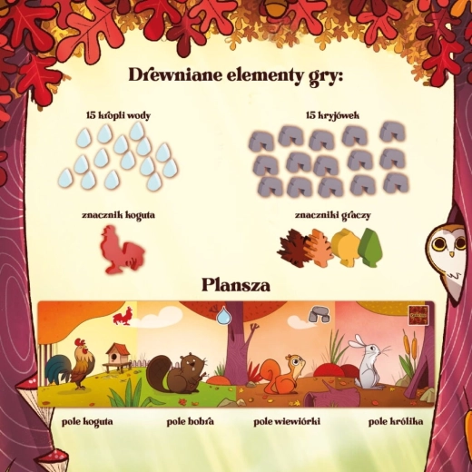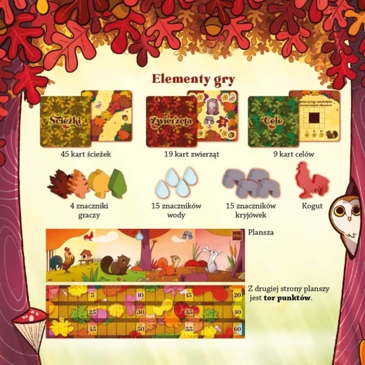 Construiește-ți propria rețea de poteci forestiere și călăuzește animalele către bunătățile lor preferate. Prin plasarea inteligentă a cărților, te asiguri că animalele ajung la provizii, își extind adăposturile pentru o capacitate mai mare și obțin apă pentru bonusuri valoroase. Scopul este să strângi mai multe provizii decât adversarii, totul cu reguli elegant de simple, ușor de explicat în câteva clipe.