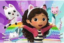 Minipuzzle-ul cu motive din GABBY’S DOLLHOUSE este alegerea ideală pentru primele încercări de asamblare. Datorită celor 54 de piese, copiii ajung rapid la imaginea finală și trăiesc sentimentul de reușită. Ilustrațiile colorate din serialul îndrăgit îi motivează la joacă și susțin concentrarea.