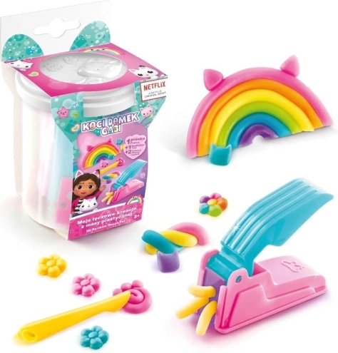 Set cu plastilină GABIN CĂSUȚA PISICII Creațiile mele curcubeu – pahar alb