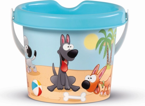 Găleată colorată cu motivul unui căţeluş vesel, ideal pentru joacă pe nisip. Fabricată din plastice de calitate în Italia, asigură momente sigure şi distractive pentru copilul dumneavoastră.