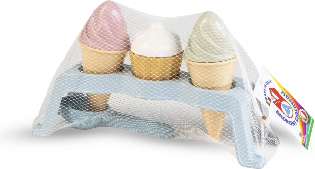 Transformați groapa cu nisip într-o mică gelaterie! Acest set jucăuș conține tot ceea ce le trebuie copiilor pentru a face “cupe” și prăjiturele – de la cornete și forme până la suportul practic. Plasticul rezistent și ușor de spălat asigură durabilitate și bucuria jocului atât pe plajă, cât și în grădină.