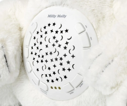 Jucăria pluș cu proiector Milly este ajutorul perfect pentru părinți în calmarea și adormirea bebelușilor. După activarea proiectorului, se alege aleatoriu din 10 melodii lullaby, în timp ce cerul de noapte este proiectat.