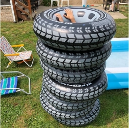Vă oferim un colac de înot stilat în formă de anvelopă, ideal pentru relaxare și distracție în apă. Acest produs impresionează prin modelul realist al benzii de rulare și culorile contrastante, oferindu-i un caracter unic. Este o alegere excelentă atât pentru piscine, cât și pentru plaje sau lacuri.