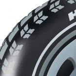 Designul sportiv al colacului cu un model realist de bandă de rulare și culori contrastante atrage atenția și oferă colacului un caracter unic.