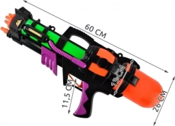 Acest pistol cu apă îmbină dimensiunea, performanța și confortul. Rezervorul generos de 1,25 litri prelungește jocul fără realimentări frecvente, iar raza de aprox. 6 metri asigură un jet de apă impresionant. Operarea este simplă: desfiletează rezervorul, umple cu apă, închide și pompează cu cursa glisantă inferioară – gata de stropit.